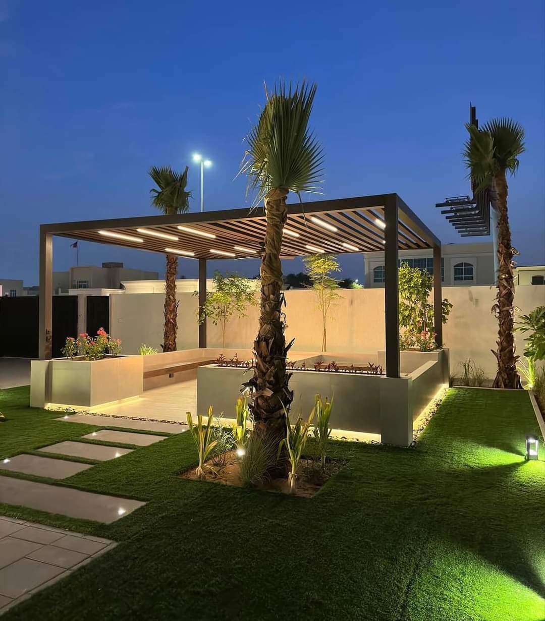 Abdul Sattar Landscaping is a most rated pergola contractors in Dubai and near by. Your garden landscape can be divided into three or more parts based on your requirements such as a private, public and a living area. The public area must be more welcoming to visitors. Adding architectural elements like pergolas to the front yard and pathways to your entrance makes them look more elegant.